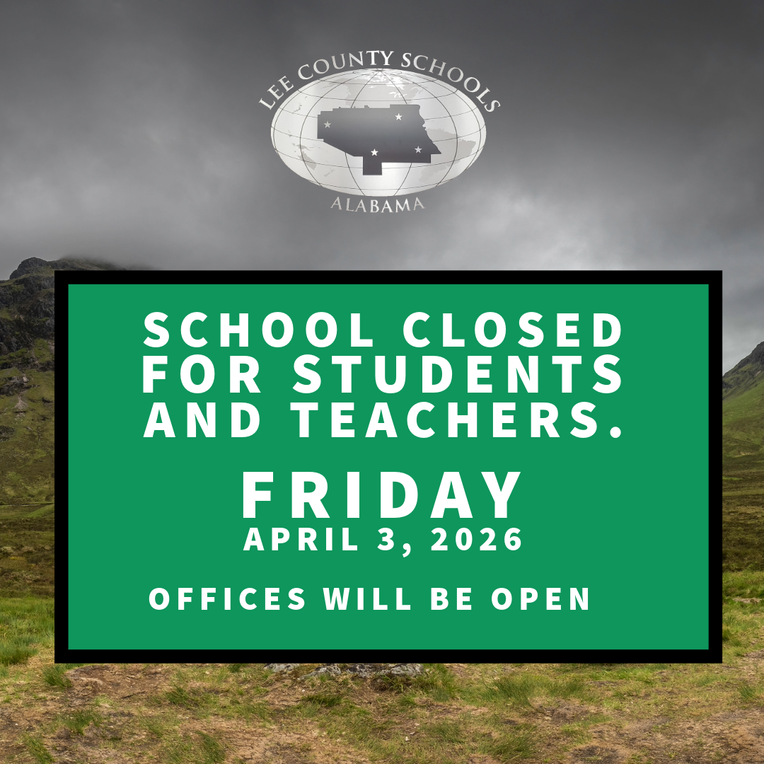 Remember, all Lee County Schools will be closed Friday, 4/3/2026 for students and teachers. All offices, including Central Office will be open.